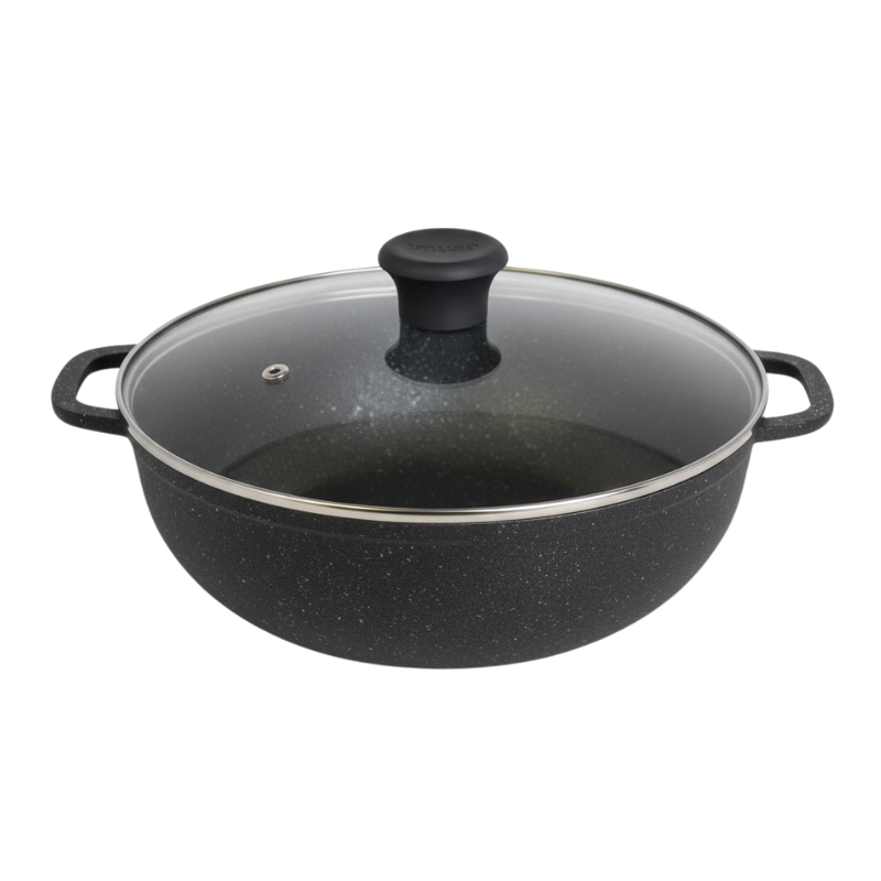 Caldero gris de alta calidad, perfecto para cocinar con comodidad y seguridad. Su excelente distribución del calor garantiza resultados uniformes, mientras su diseño moderno se adapta a cualquier cocina.