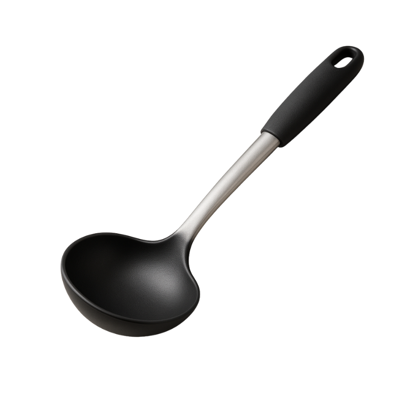 Cucharón de acero inoxidable, resistente y duradero, ideal para servir sopas, caldos y guisos con facilidad. Su diseño robusto y elegante garantiza higiene, larga vida útil y comodidad en la cocina diaria.