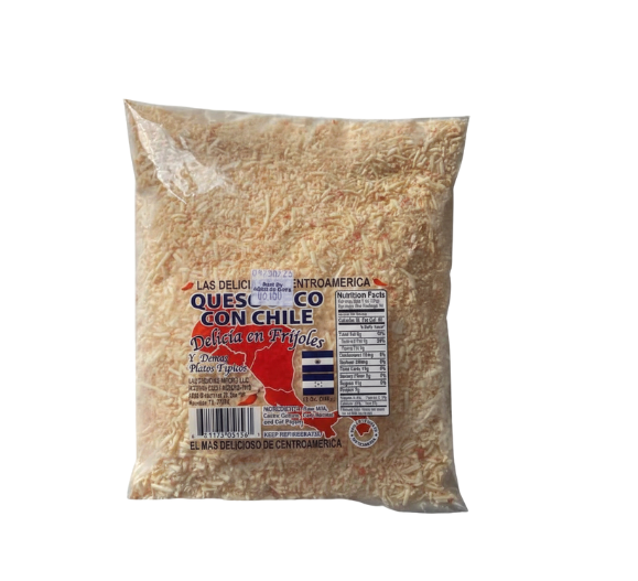 O&C Food Distributor, LLC Products Las Delicias Queso Seco c/ Chile (Rallado)/Shredded Hard Cheese with Chili 1/12 oz
